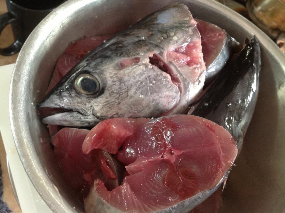 This is the raw tuna fish I got from wet market, about 1kg+ costing $7